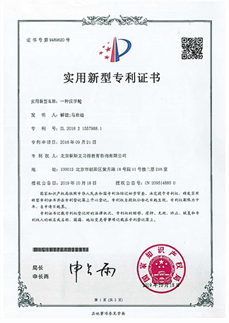 睿丁旗下新斯文美育不断深入展开“美育”、“阅读”课题研究,全面升级课程,并获得国家知识产权局认证的国家专利(专利号:ZL 2018 2 1557988.1;ZL 2018 2 1557987.7;专利种类:实用新型专利)。
